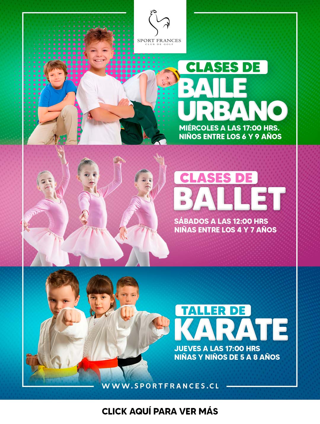 Estimados Socios,Les comunicamos que debido a los feriados de Semana Santa, nuestras Escuelas Deportivas de adultos y niños se encontrarán suspendidas los días viernes 03 y sábado 04 de abril, retomando las actividades con normalidad el día lunes 06 de abril.Agradeciendo su comprensión, les saluda atentamente Equipo de DeportesClub de Golf Sport Francés